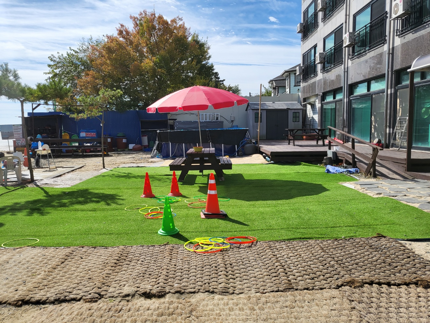 썬비치하우스 펜션의 가장 큰 장점은 아이들을 위한 다양한 놀이 시설입니다. 트램펄린, 수영장, 모래놀이터 등 아이들이 즐길 수 있는 시설이 잘 갖춰져 있어요. 우리 아이들은 하루 종일 신나게 뛰어놀았답니다. 부모님들께서는 아이들이 안전하게 놀 수 있는 환경에서 잠시 휴식을 취할 수 있어 일석이조예요. 아이들의 웃음소리를 들으며 커피 한 잔의 여유를 즐겨보는 것은 어떨까요?